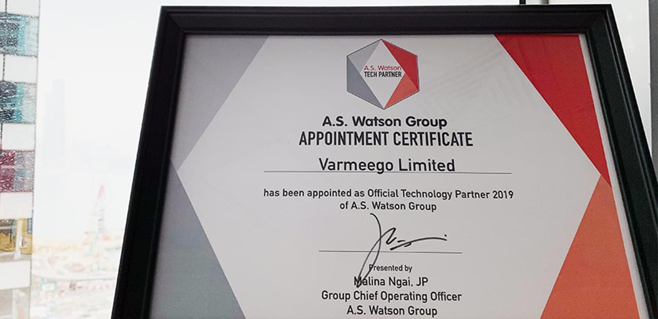 Established in Hong Kong in 1841, A.S. Watson Group (ASW), the world’s largest international health and beauty retailer with over 14,500 stores in 24 markets, invited Varmeego to participate in the A.S. Watson 2019 Technology Partners Event held in November 2018. The ASW Technology Partnership Programme was first launched in 2017 with the objective to build a network of technology expert partners to support the acceleration of ASW’s digital transformation. Varmeego was thrilled to take part in the A.S. Watson 2019 Technology Partners Event and being recognized as one of ASW Technology Partners.